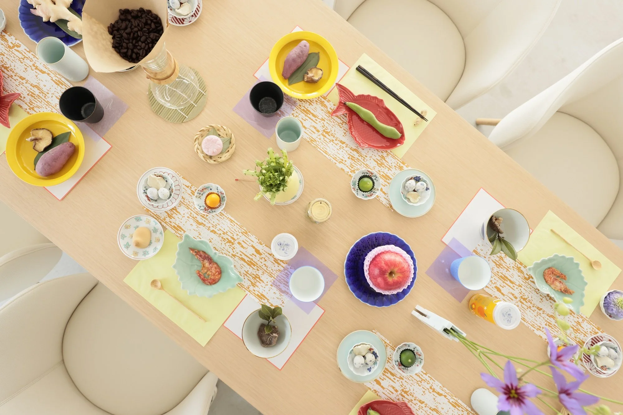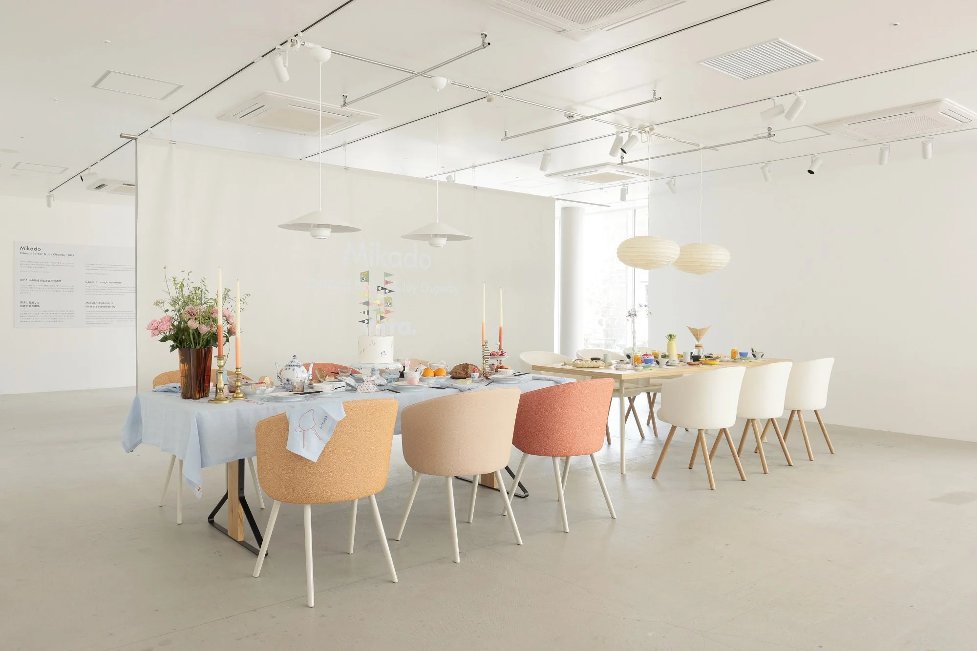 Vitra Japan plante eine Ausstellung zum neuen Mikado-Stuhl in Tokyo. In drei Tisch-Szenen wurden japanische und europäische Kulturen inszeniert. Dafür kooperierten wir mit der dänischen Geschirrmarke Royal Copenhagen sowie dem Keramikhersteller Maruhiro aus Japan. Das Ergebnis ist eine harmonische Verbindung von Design, Kulinarik und Kultur.